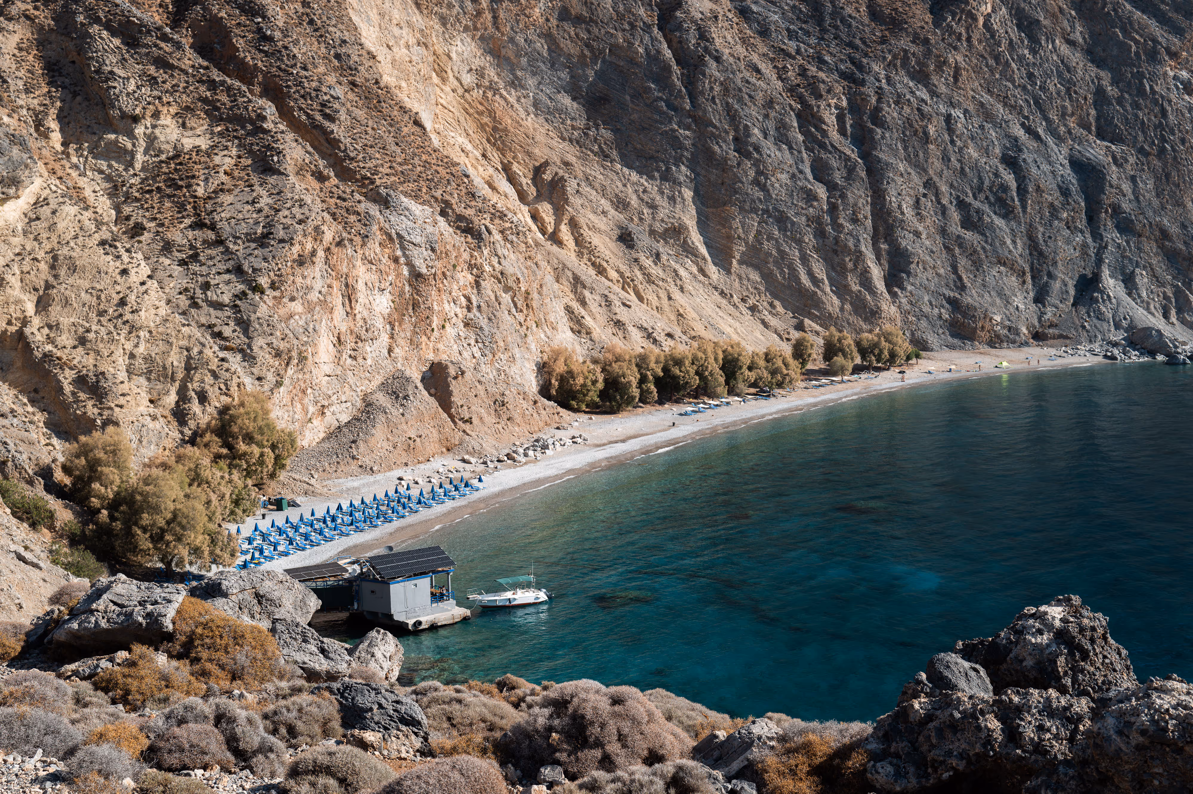 The E4 coastal path runs all the way; there are difficult sections between Agia Roumelli and Sougia, but lots of lovely walks between Sfakia and Roumelli, with gorges and beaches scattered along the way.