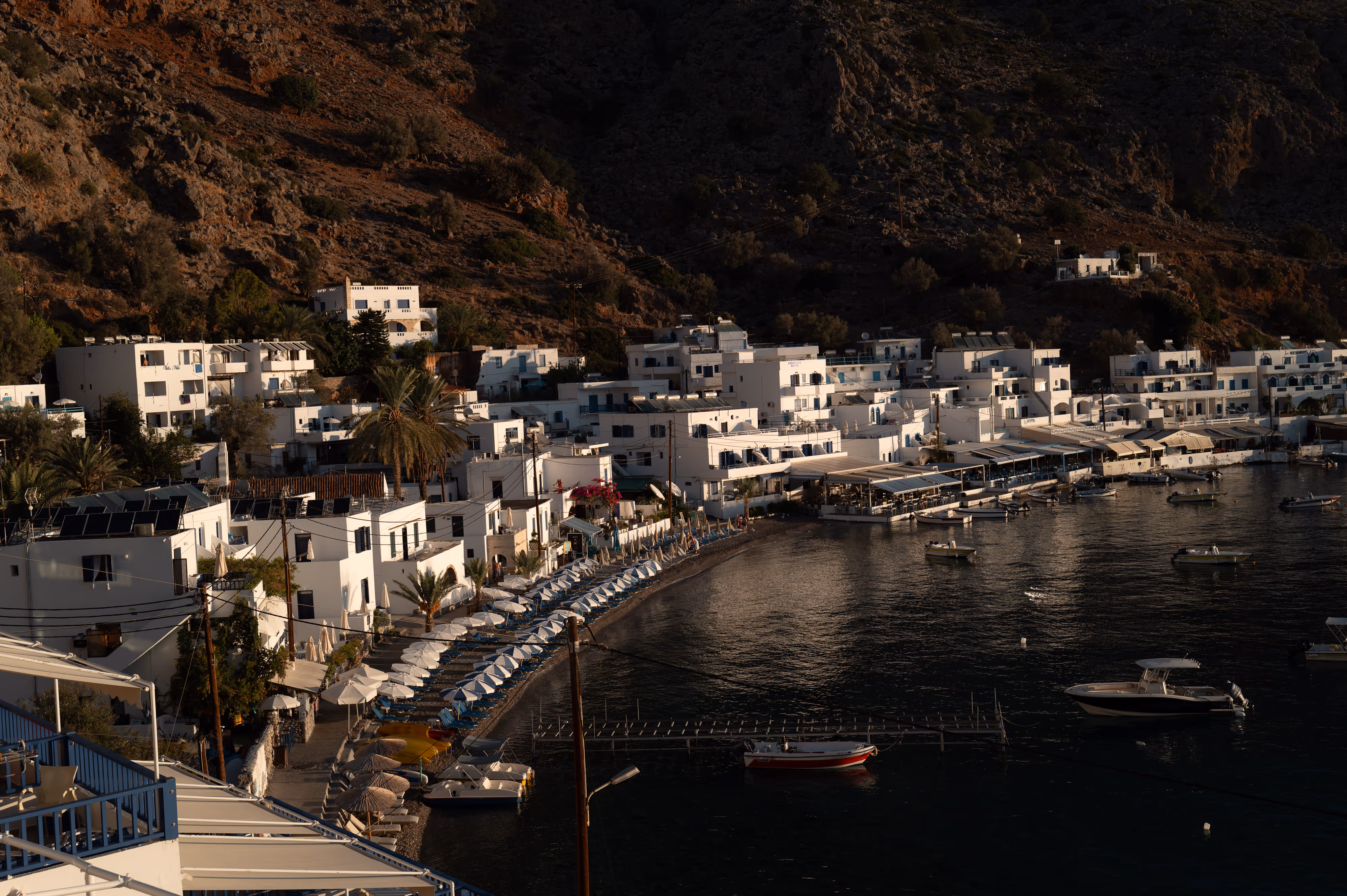Loutro has a couple of beaches, but these are covered with umbrellas and sun loungers, so we normally venture further afield if we want to sit in the sun..