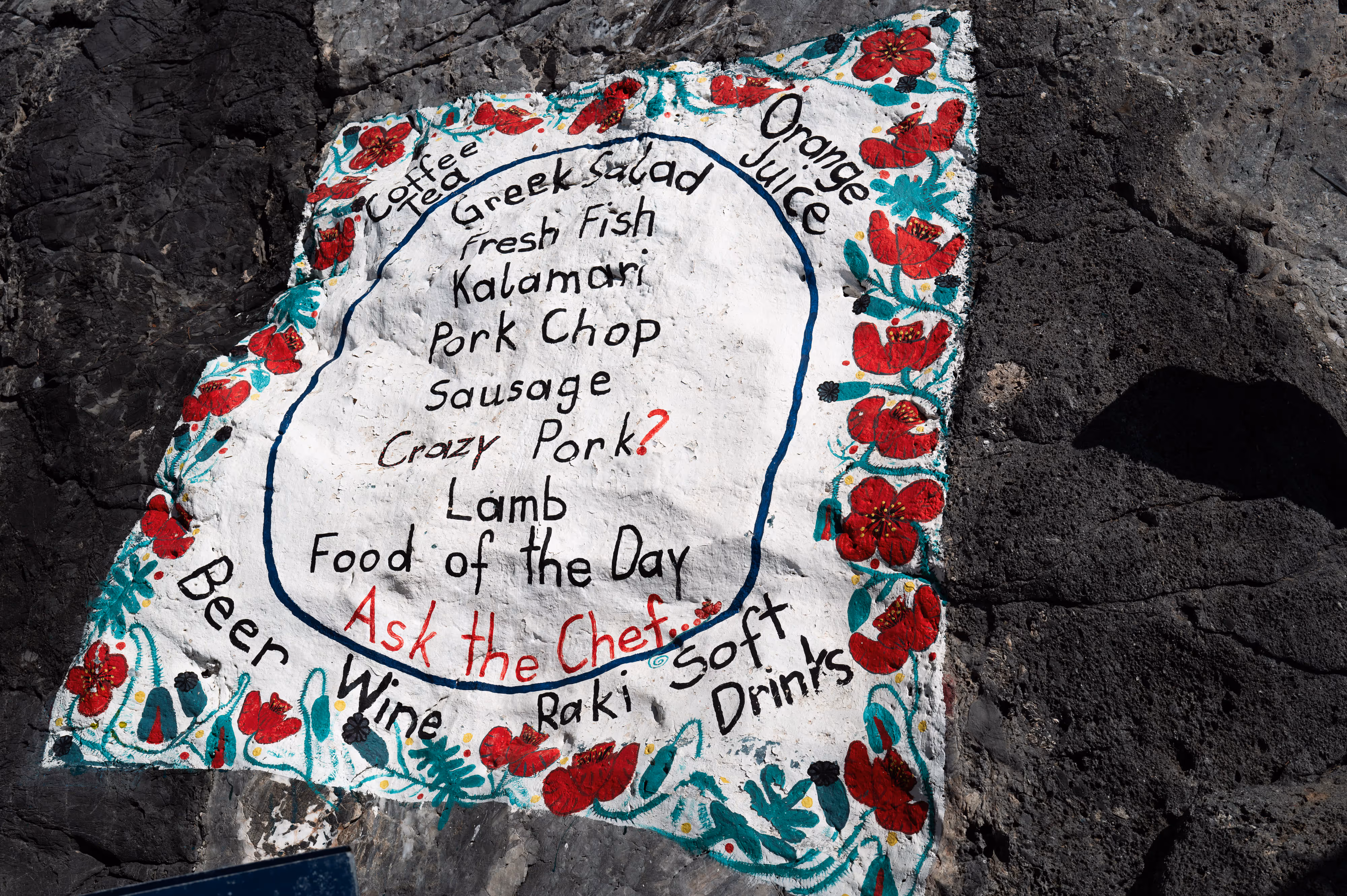 The menu at Aghios Pavlos