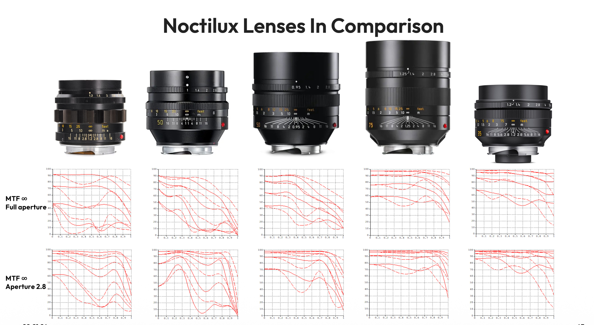 Noctilux lenses MTF comparison - courtesy of Leica Camera